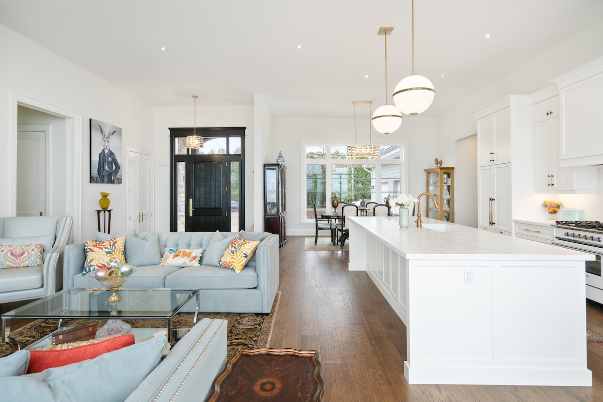 The Fresh Lake House design creates a welcoming, bright and breezy interior, accentuated with light finishes and generous windows facing the lake. The exterior features a cozy, traditional cottage style.